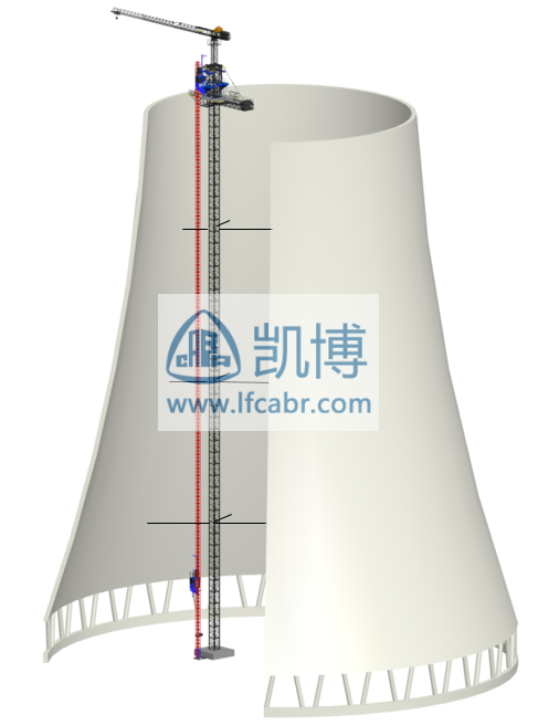 冷卻塔施工的專用設(shè)備。既為升降機(jī)提供附著體,又為施工中鋼筋和砼的儲存和水平運(yùn)輸提供平臺。
