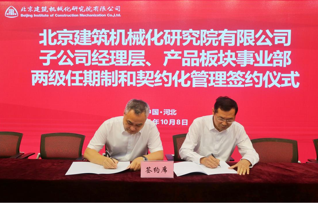 10月8日,北京建機院舉行所屬子公司廊坊凱博建設(shè)機械科技有限公司以及公司所屬事業(yè)部兩級經(jīng)理層成員任期制與契約化管理簽約儀式。北京建機院領(lǐng)導(dǎo)、公司部門以上負責人等共計80余人參加簽約儀式。